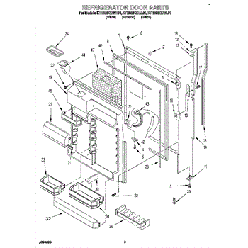 This screw is used to secure the handle end cap to the center of the door. The screw size measures 8-18 x 1/2 inches.