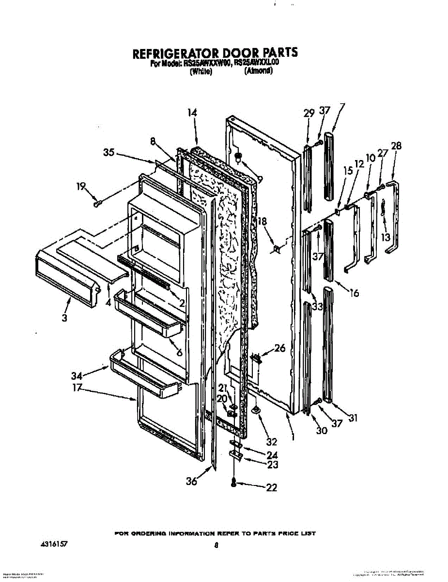 This screw is used to secure the handle end cap to the center of the door. The screw size measures 8-18 x 1/2 inches.