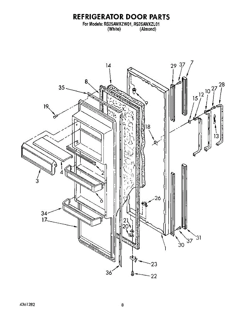 This screw is used to secure the handle end cap to the center of the door. The screw size measures 8-18 x 1/2 inches.