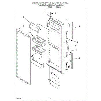 Door assembly, incluces inner and outer door panels along with door gasket.