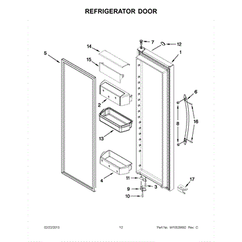 The Door bin is an OEM replacement part for Whirlpool refrigerators. It is a component located inside the refrigerator door that provides storage for small items like condiments, eggs, or milk cartons. The door bin is designed with convenient dividers and slots to securely organize a variety of items within easy reach on the refrigerator door.