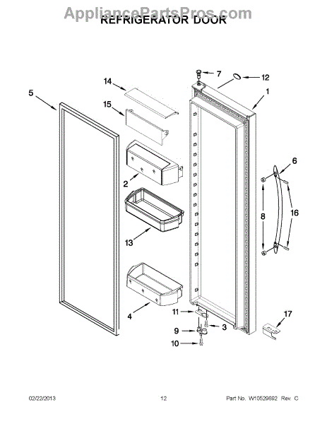 The Door Closure Cam is an OEM replacement part for Whirlpool refrigerators. It is a small lever located inside refrigerator doors that engages the latch bolt when closing. The closure cam ensures doors are securely fastened shut to maintain optimal cooling temperatures. Causes of a bad closure cam can include worn or loose mounting points preventing engagement, cracked or broken lever components, or door latch mechanisms that inhibit full closure. Symptoms of a bad door closure cam include: