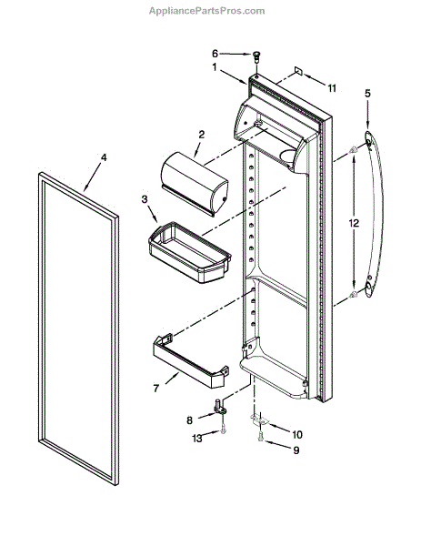 Replace your refrigerator's cracked, damaged, or worn white door assembly. This complete door panel installs on the side-by-side unit's exterior.
