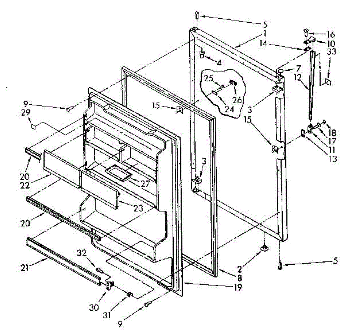 White plastic plug covers unused hinge or handle mounting holes on refrigerator doors. Replace missing, cracked, or discolored plugs for a finished look.