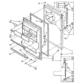White plastic plug covers unused hinge or handle mounting holes on refrigerator doors. Replace missing, cracked, or discolored plugs for a finished look.