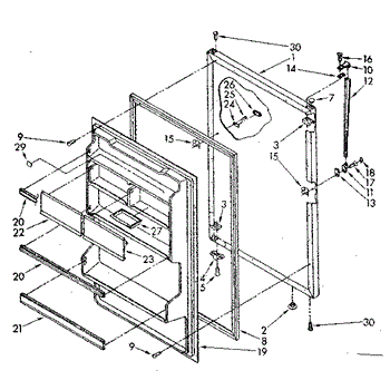 This screw is used to secure the handle end cap to the center of the door. The screw size measures 8-18 x 1/2 inches.