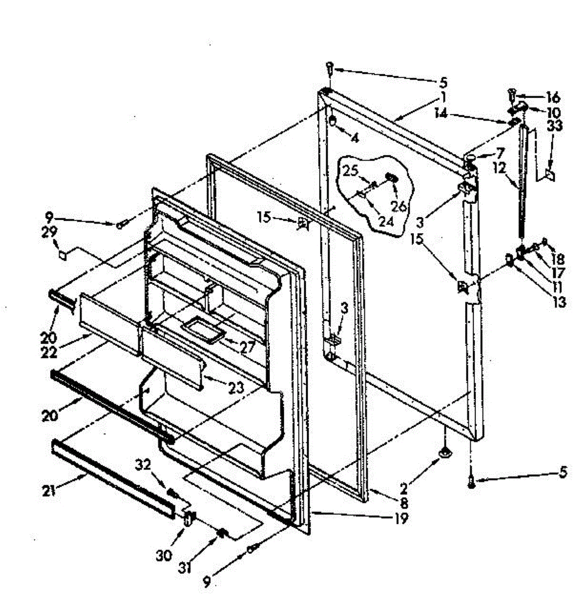 Secures panels, brackets, and components to appliance cabinets. Replace missing, stripped, or damaged screws to restore tight fit and alignment.