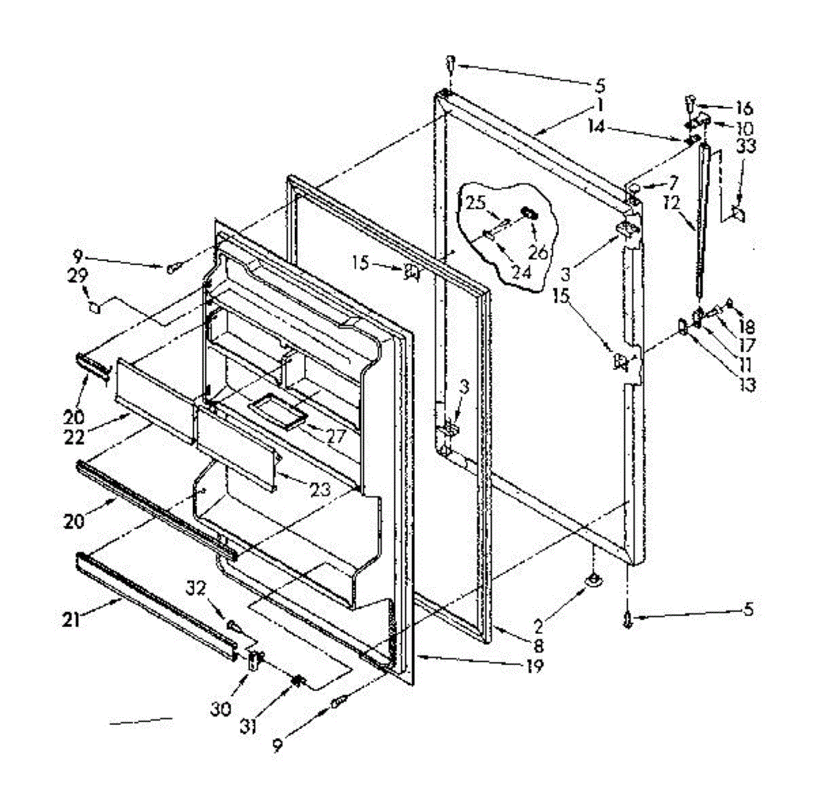 White plastic plug covers unused hinge or handle mounting holes on refrigerator doors. Replace missing, cracked, or discolored plugs for a finished look.