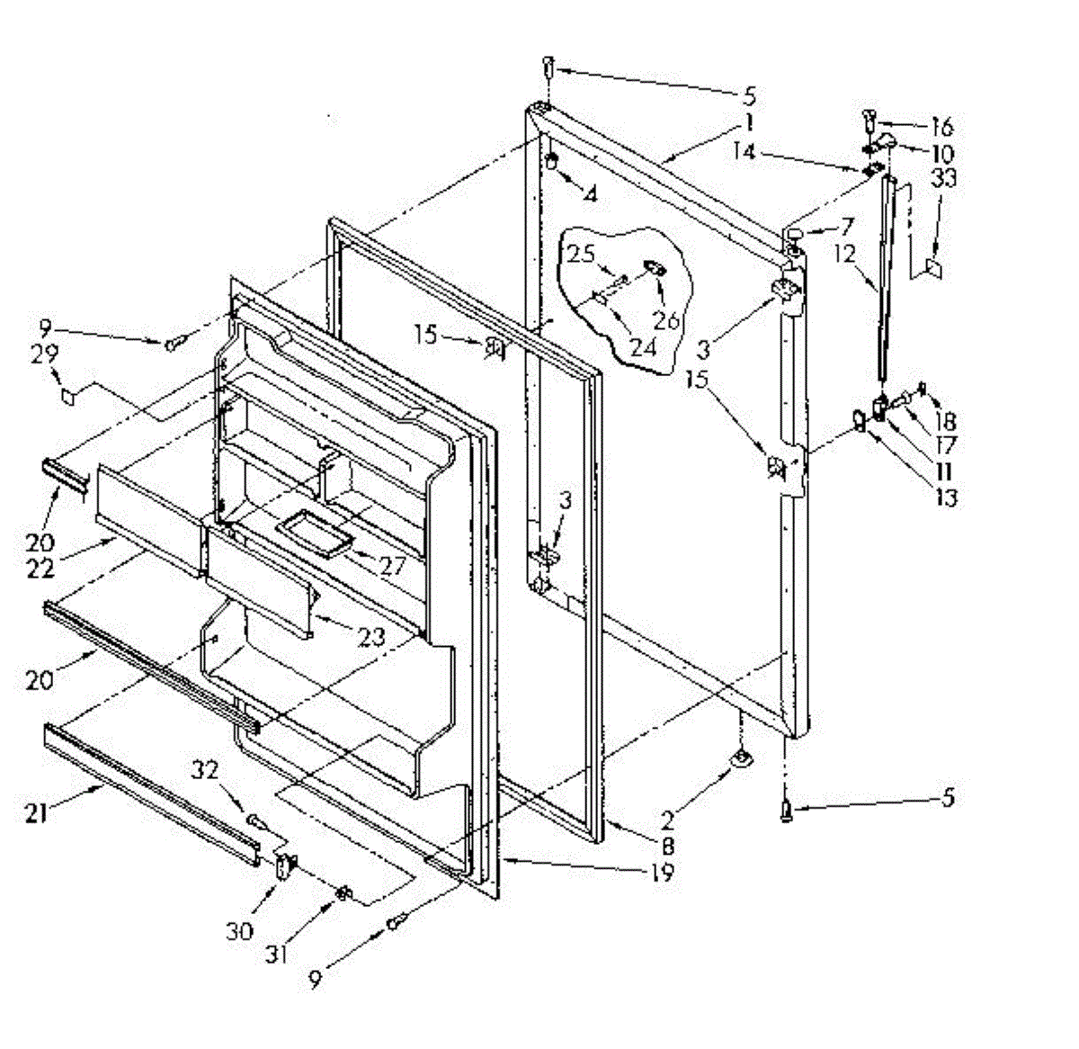White plastic plug covers unused hinge or handle mounting holes on refrigerator doors. Replace missing, cracked, or discolored plugs for a finished look.