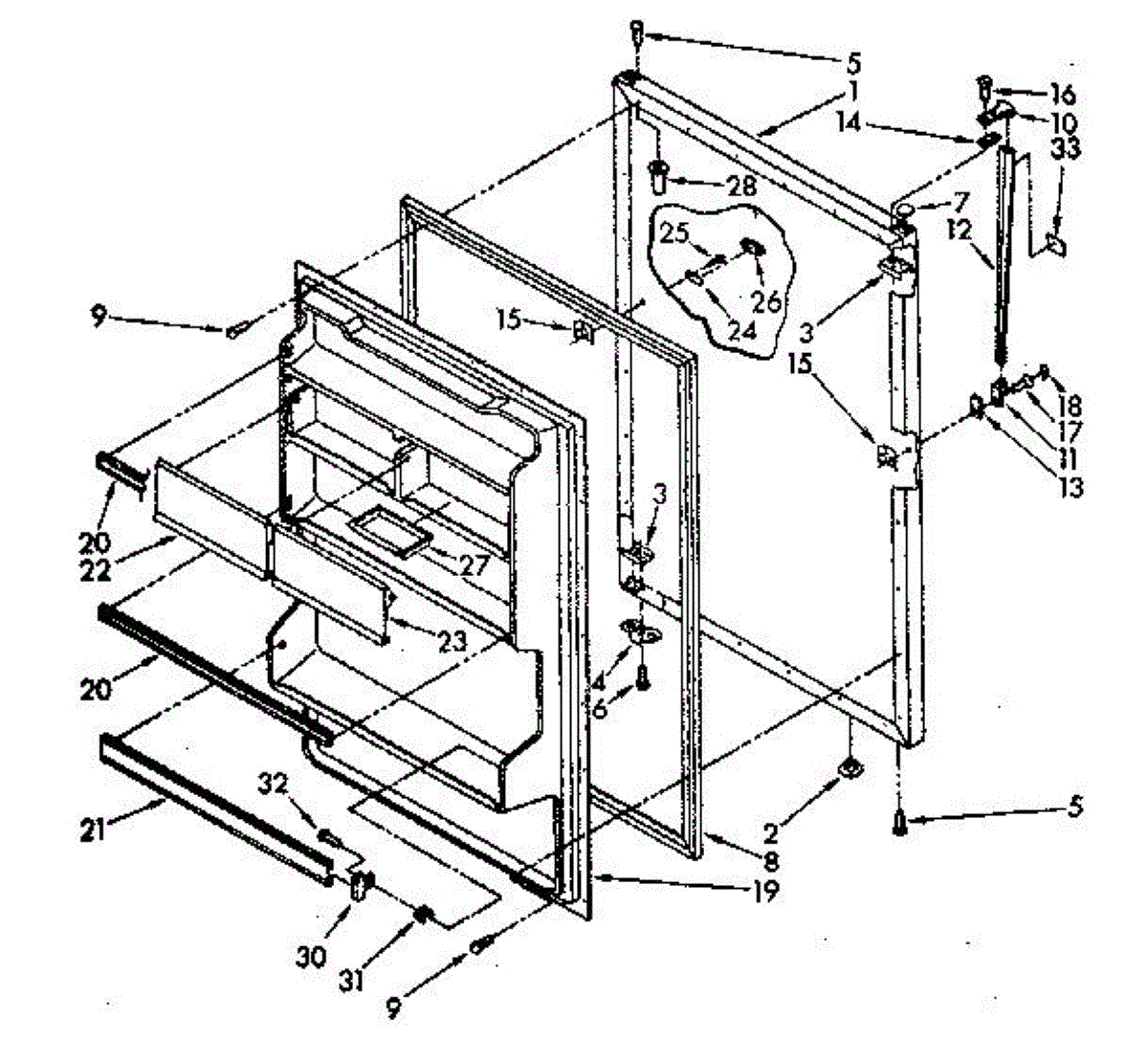 Secures panels, brackets, and components to appliance cabinets. Replace missing, stripped, or damaged screws to restore tight fit and alignment.