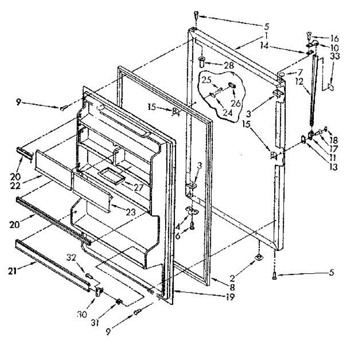 Secures panels, brackets, and components to appliance cabinets. Replace missing, stripped, or damaged screws to restore tight fit and alignment.