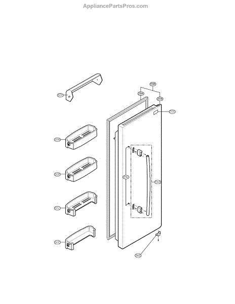 The Door Stopper Assembly is an OEM replacement part for LG French door refrigerators. It is a crucial internal component that ensures the refrigerator door is held securely open at the desired angle.