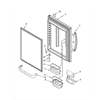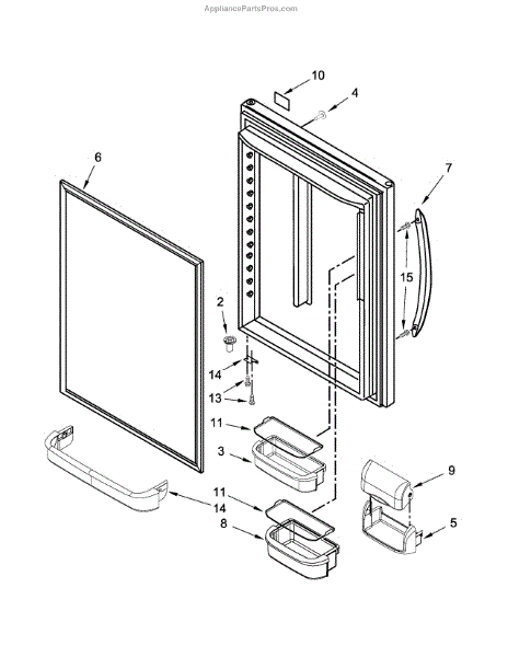 Complete refrigerator door assembly for bottom-mount models. Replaces cracked, damaged, or warped doors. Includes outer panel and mounting hardware.