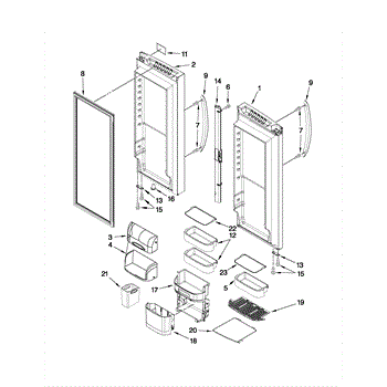 Complete refrigerator door assembly. Installs as the main access door for your unit. Replace if cracked, damaged, warped, or has broken hinges or seals.