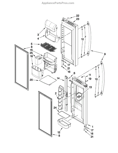 Vertical mullion assembly that covers the gap between refrigerator doors. Replaces cracked, broken, or loose door trim for a clean, finished appearance.