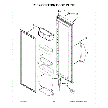 The Door Bin Frame is an OEM part for Whirlpool refrigerators. This part supports the removable door bins, which are used for storing smaller items like beverages, condiments, or dairy products.