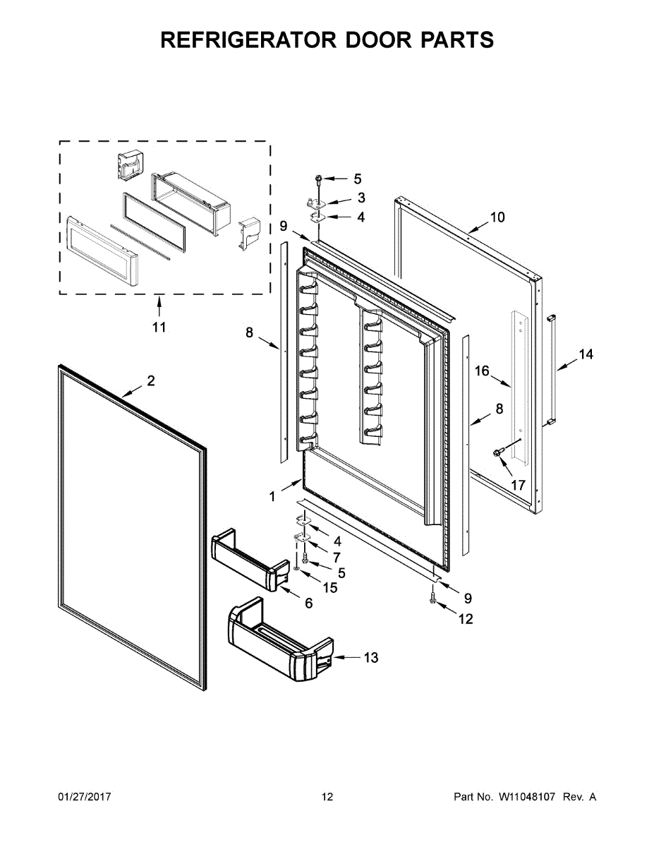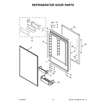 This control lever secures a refrigerator door shelf bin to the door frame so bins stay seated and stable during normal use. Replacing a broken or worn lever restores proper bin retention and reduces rattling or unexpected bin release. What it does