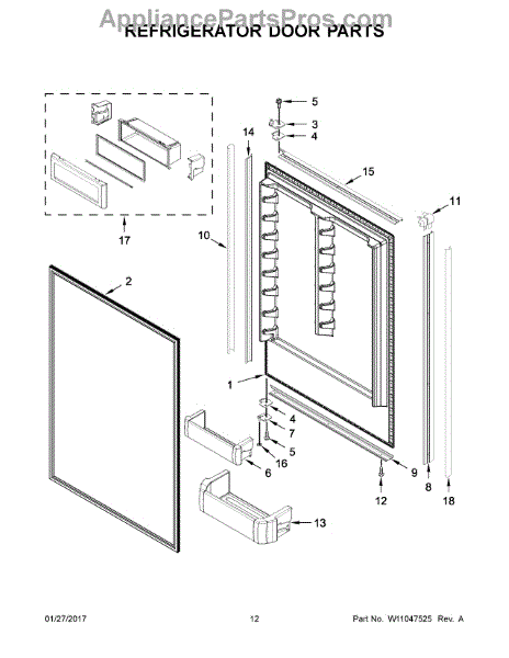 This replacement door shelf bin restores a fridge door storage pocket so you can safely hold bottles and containers. It mounts to the inner door using the existing cantilever support points to return reliable shelf function. What it does: