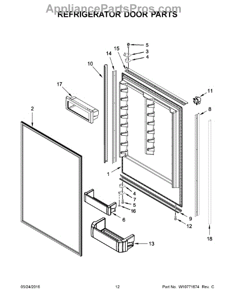 This control lever secures a refrigerator door shelf bin to the door frame so bins stay seated and stable during normal use. Replacing a broken or worn lever restores proper bin retention and reduces rattling or unexpected bin release. What it does