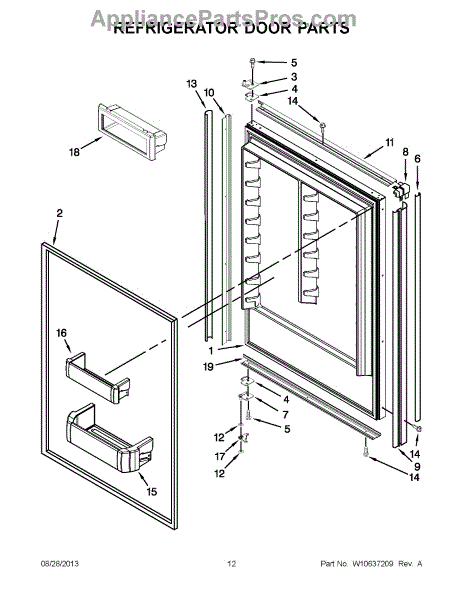 This control lever secures a refrigerator door shelf bin to the door frame so bins stay seated and stable during normal use. Replacing a broken or worn lever restores proper bin retention and reduces rattling or unexpected bin release. What it does