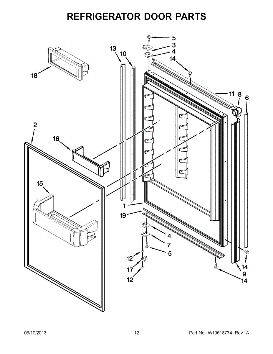This control lever secures a refrigerator door shelf bin to the door frame so bins stay seated and stable during normal use. Replacing a broken or worn lever restores proper bin retention and reduces rattling or unexpected bin release. What it does