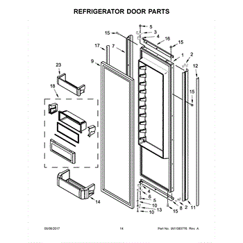 The Dairy Bin is an OEM replacement part for Whirlpool's built-in and integrated refrigerator side-by-side door shelves. It provides a designated space optimized for storing dairy products.