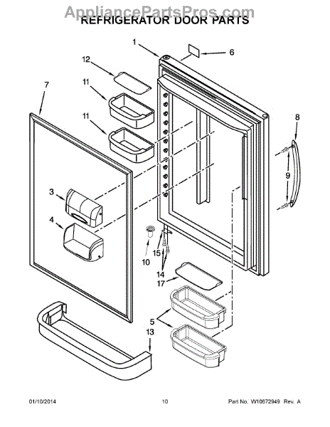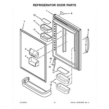 Refrigerator door gasket seals the door opening to maintain temperature. Replace if torn, cracked, or compressed. Confirm fit with your model number.