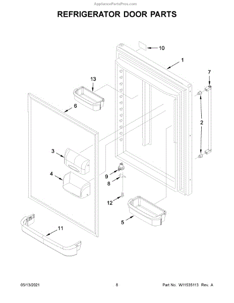 Parts for Kitchenaid KRBL109ESS03: Refrigerator Door Parts