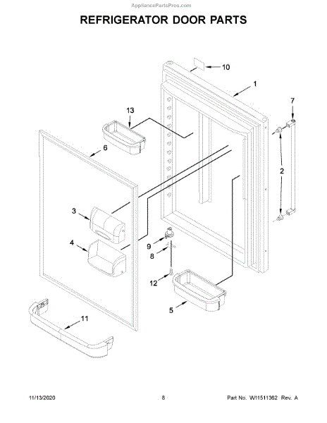 This clear refrigerator door bin snaps into the inner door liner to hold bottles, jars, and condiments. Replace a cracked or missing bin to restore secure door storage and keep frequently used items organized and within reach.