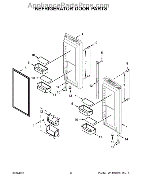 The Door Shelf Bin is an OEM part for Whirlpool refrigerators. This bin is designed to fit into the door of the refrigerator, providing additional storage space for items such as bottles, condiments, and small containers. This door bin measures about 15 inches wide by 3 inches high by 8 inches deep.