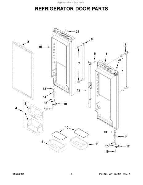 The Door Shelf Bin is an OEM part for Whirlpool refrigerators. This bin is designed to fit into the door of the refrigerator, providing additional storage space for items such as bottles, condiments, and small containers. This door bin measures about 15 inches wide by 3 inches high by 8 inches deep.