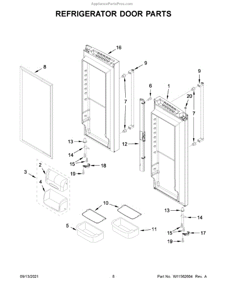 The Door Shelf Bin is an OEM part for Whirlpool refrigerators. This bin is designed to fit into the door of the refrigerator, providing additional storage space for items such as bottles, condiments, and small containers. This door bin measures about 15 inches wide by 3 inches high by 8 inches deep.