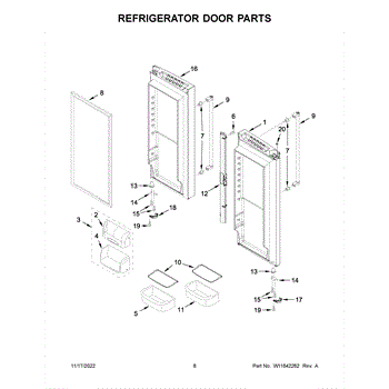 The Door Shelf Bin is an OEM part for Whirlpool refrigerators. This bin is designed to fit into the door of the refrigerator, providing additional storage space for items such as bottles, condiments, and small containers. This door bin measures about 15 inches wide by 3 inches high by 8 inches deep.