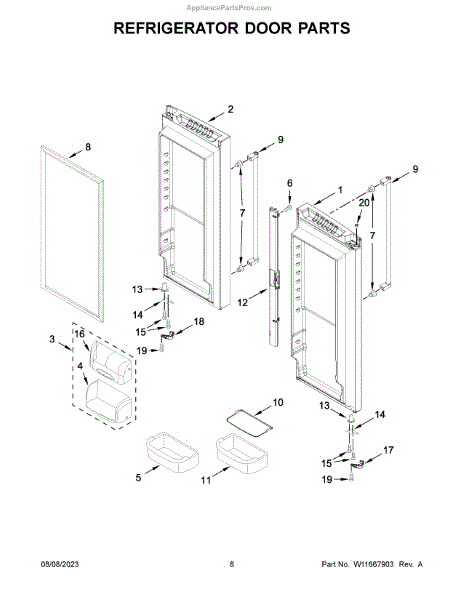 The Door Shelf Bin is an OEM part for Whirlpool refrigerators. This bin is designed to fit into the door of the refrigerator, providing additional storage space for items such as bottles, condiments, and small containers. This door bin measures about 15 inches wide by 3 inches high by 8 inches deep.