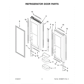 The Door Bin is an OEM replacement part for Whirlpool refrigerators. Mounted on the refrigerator doors, bins conveniently organize stored items. Causes of replacement consist of excess weight occasionally placed in bins can bow or warp tray structures over extended use as well. Symptoms involve: