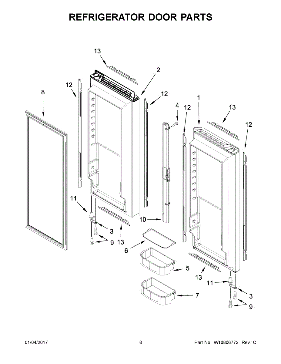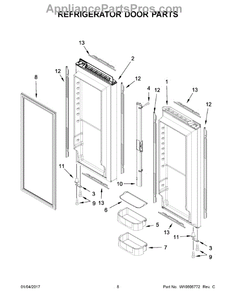 Door trim restores the finished edge and appearance of your refrigerator door while helping protect the gasket area and reduce drafts. Replaces cracked, dented, or worn trim to keep the door looking and sealing properly. What it does: