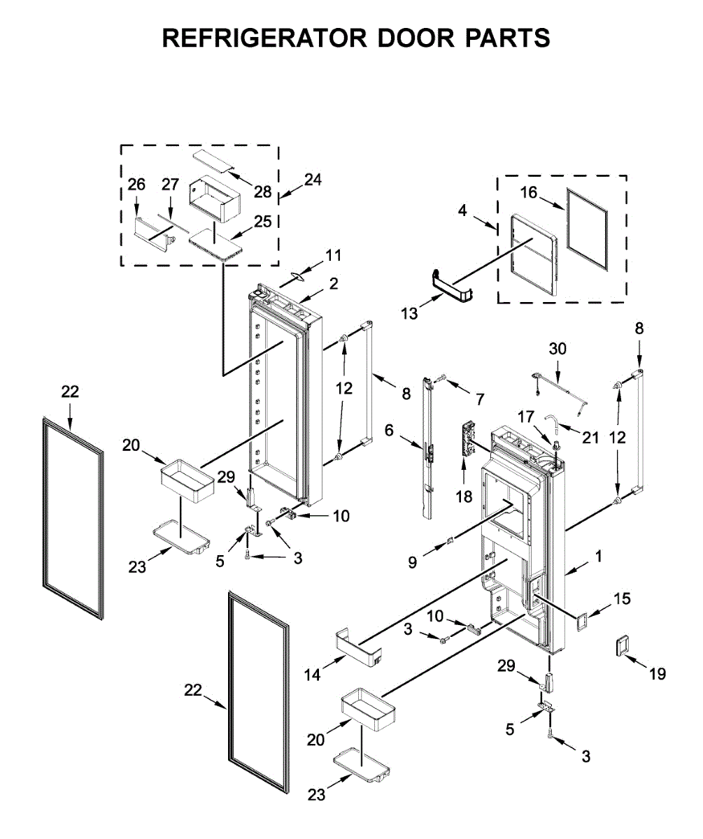 The Handle is an OEM part for Whirlpool refrigerators. Located on the outside front center of the refrigerator cabinet, this handle provides an ergonomic grip point for easily opening and closing the refrigerator door. This handle measures 30 3/4 inches.