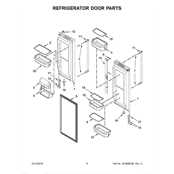 The Door Shelf Bin is an OEM part for Whirlpool refrigerators. This bin is designed to fit into the door of the refrigerator, providing additional storage space for items such as bottles, condiments, and small containers. This door bin measures about 15 inches wide by 3 inches high by 8 inches deep.