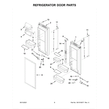 The Door Shelf Bin is an OEM part for Whirlpool refrigerators. This bin is designed to fit into the door of the refrigerator, providing additional storage space for items such as bottles, condiments, and small containers. This door bin measures about 15 inches wide by 3 inches high by 8 inches deep.