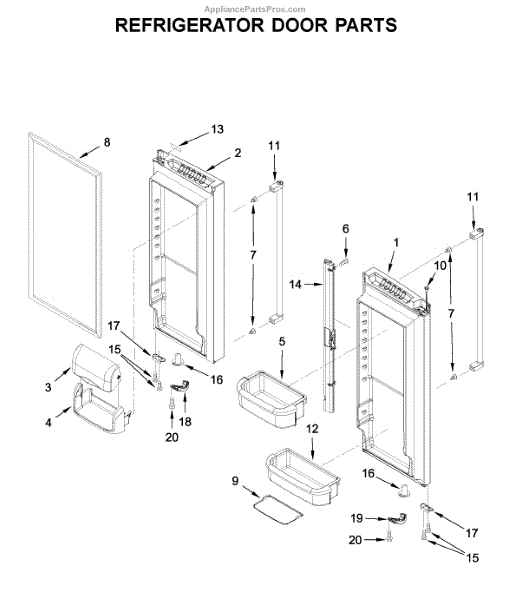 The Door Shelf Bin is an OEM part for Whirlpool refrigerators. This bin is designed to fit into the door of the refrigerator, providing additional storage space for items such as bottles, condiments, and small containers. This door bin measures about 15 inches wide by 3 inches high by 8 inches deep.