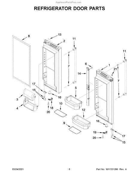 The Door Shelf Bin is an OEM part for Whirlpool refrigerators. This bin is designed to fit into the door of the refrigerator, providing additional storage space for items such as bottles, condiments, and small containers. This door bin measures about 15 inches wide by 3 inches high by 8 inches deep.