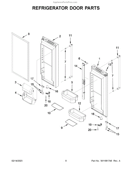 The Door Shelf Bin is an OEM part for Whirlpool refrigerators. This bin is designed to fit into the door of the refrigerator, providing additional storage space for items such as bottles, condiments, and small containers. This door bin measures about 15 inches wide by 3 inches high by 8 inches deep.