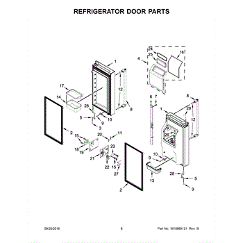 The Door Bin is an OEM part for Whirlpool side-by-side refrigerators. Located internally on the refrigerator door, it provides convenient storage for taller items like bottles and cartons.