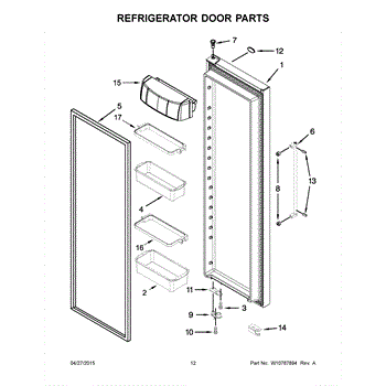 The Door Bin Frame is an OEM part for Whirlpool refrigerators. This part supports the removable door bins, which are used for storing smaller items like beverages, condiments, or dairy products.