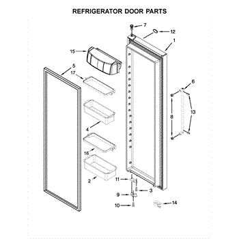 The Door Bin Frame is an OEM part for Whirlpool refrigerators. This part supports the removable door bins, which are used for storing smaller items like beverages, condiments, or dairy products.