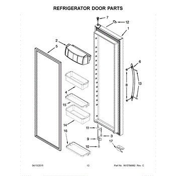 The Door Bin Frame is an OEM part for Whirlpool refrigerators. This part supports the removable door bins, which are used for storing smaller items like beverages, condiments, or dairy products.