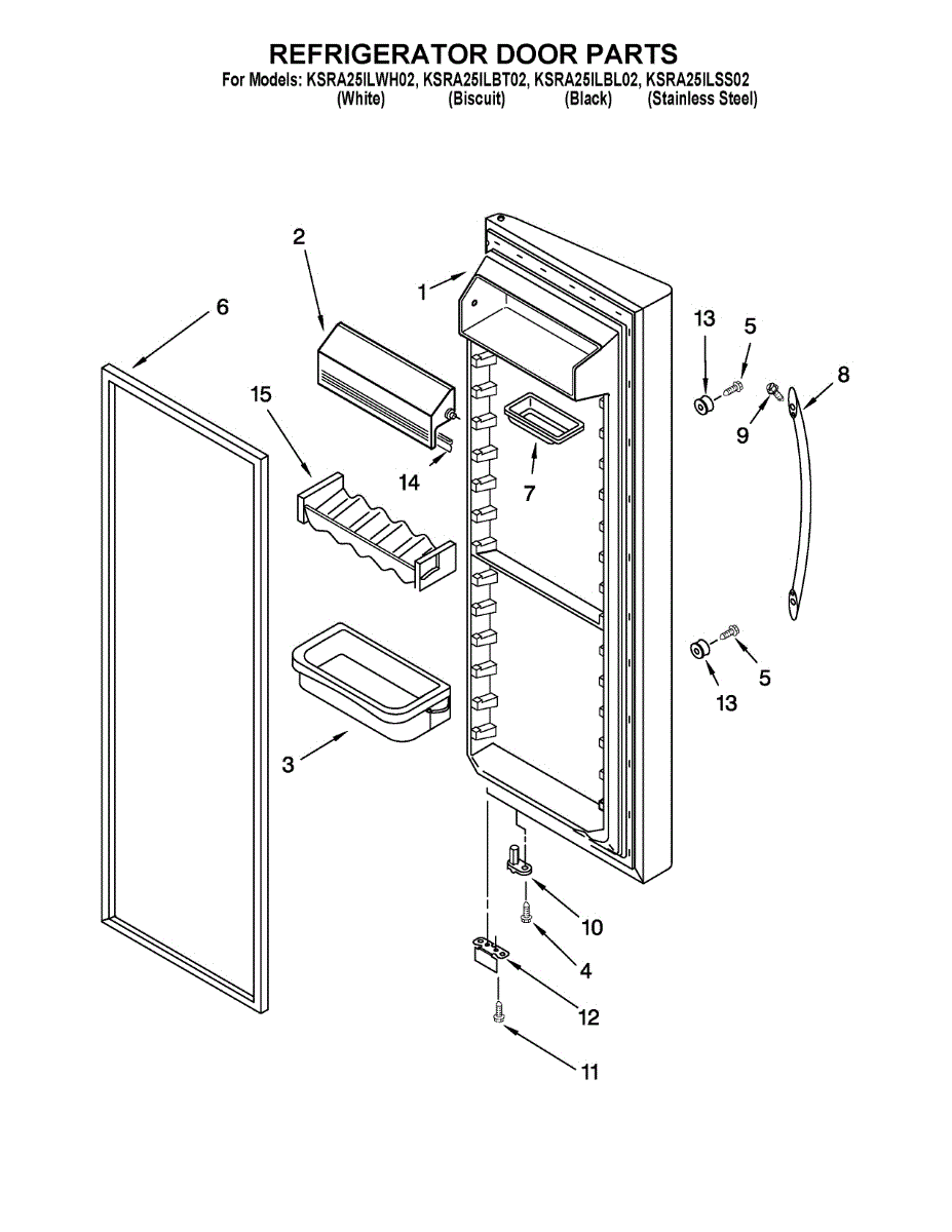 Parts for Kitchenaid KSRA25ILBT02: Refrigerator Door Parts