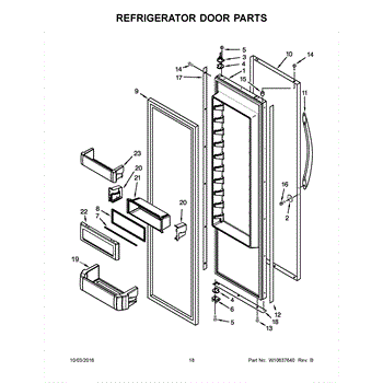 The Dairy Bin is an OEM replacement part for Whirlpool's built-in and integrated refrigerator side-by-side door shelves. It provides a designated space optimized for storing dairy products.
