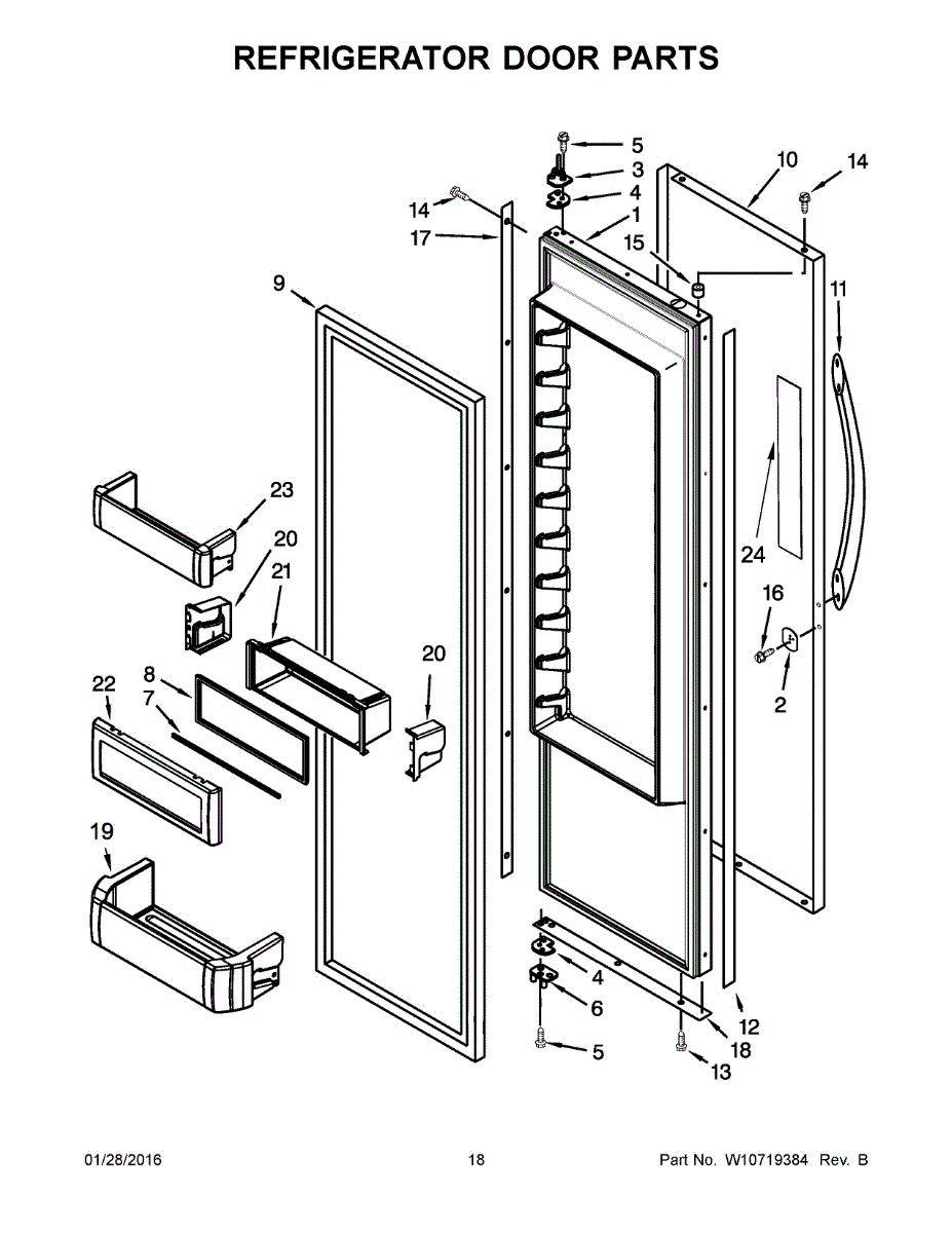 The Dairy Bin is an OEM replacement part for Whirlpool's built-in and integrated refrigerator side-by-side door shelves. It provides a designated space optimized for storing dairy products.