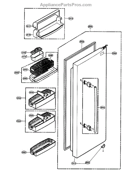 Replacement door bin basket for side-by-side refrigerators. Installs on the refrigerator door to hold condiments and small items. Needed when original is cracked or broken.